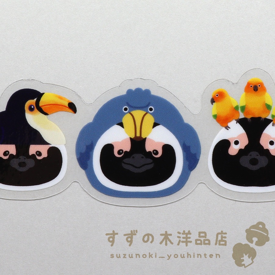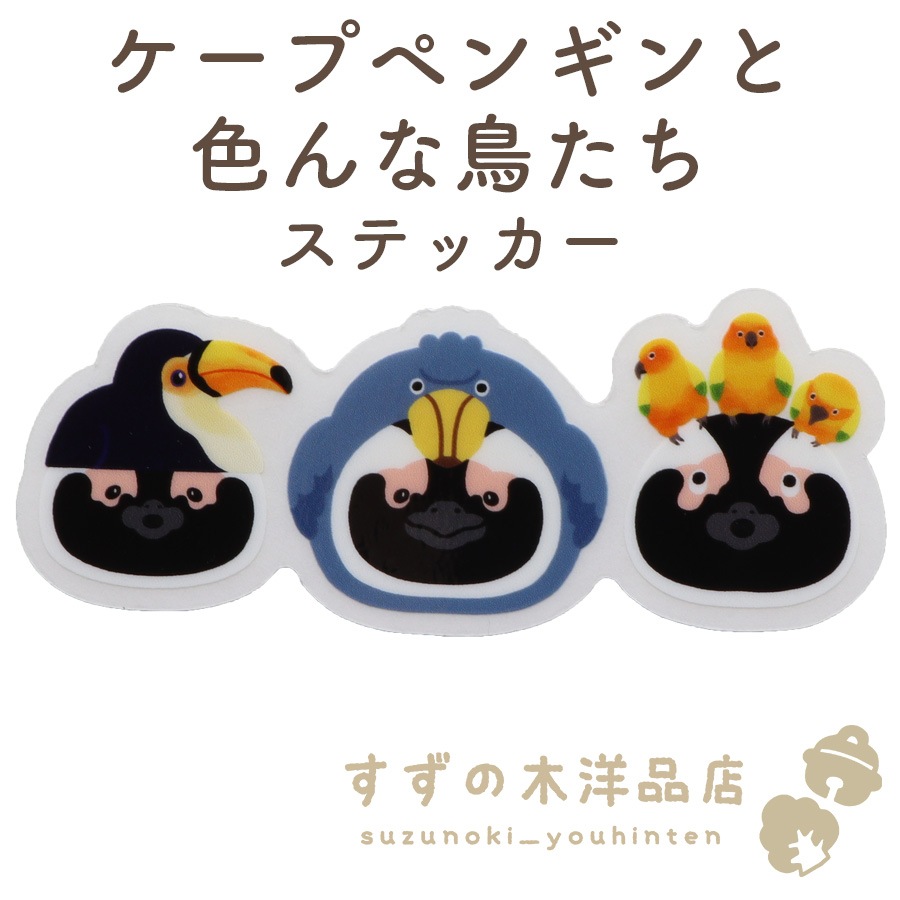 キーワード:ステッカー すてっかー シール 防水 とうめい クリア どうぶつ 動物 アニマル 動物園 水族館 ぺんぎん 人鳥 けーぷぺんぎん とり オオハシ ハシビロコウ コガネメキシコインコ